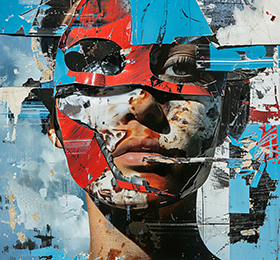 The man is depicted with a sense of realism or stylized features style.