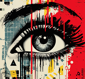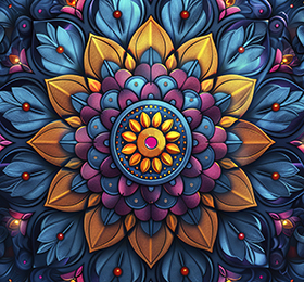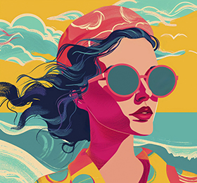 The girl’s figure may be adorned with swirling, kaleidoscopic shapes.