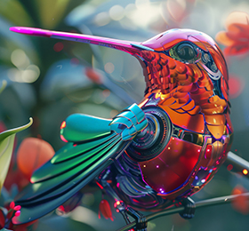 A futuristic robot bird blends advanced tech.