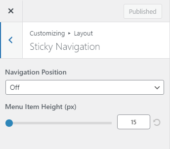 Go to Dashboard > Appearance > Customize > Layout> Sticky navigation